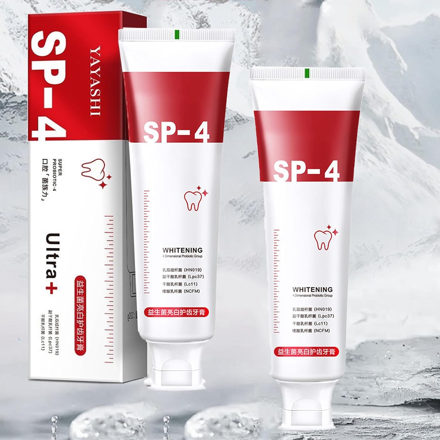 SP-4 Ultra+ Probiotic Whitening Toothpaste দাঁতের হলদে ভাব, দাগ ও প্লাক দূর করতে কার্যকর।